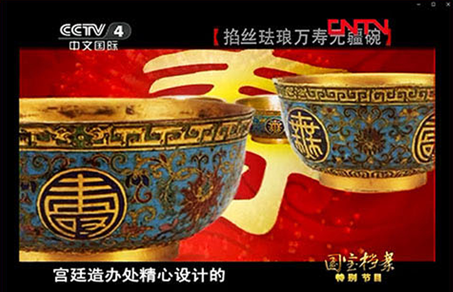 CCTV金牌节目《国宝档案》,五年内三次以乾隆御用掐丝珐琅勾莲纹《万寿无疆》碗、盘为节目选题,可见其“重要与特殊”性。