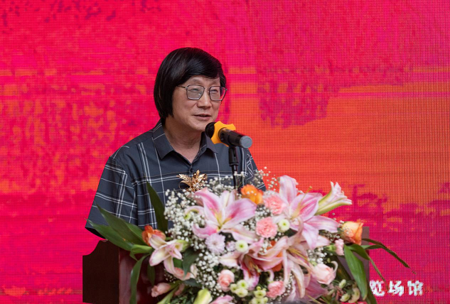 中国美术家协会副主席徐里先生在仪式上发表讲话,他称赞梁时民先生是一个了不起的画家,他的作品最大的特色,是拥有家国情怀。他热爱巴蜀文化与山水,他的作品中展现了不一样的巴蜀风采。同时表示,作为一名艺术家,要走到基层去,走到人民群众中去,走到中国的大好河山去,也希望梁老师能用自己的理解、风格、形式,描绘出祖国的万里河山。