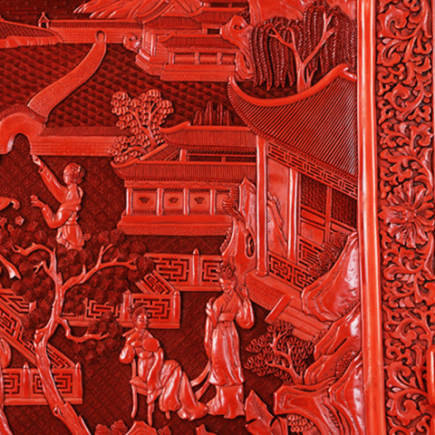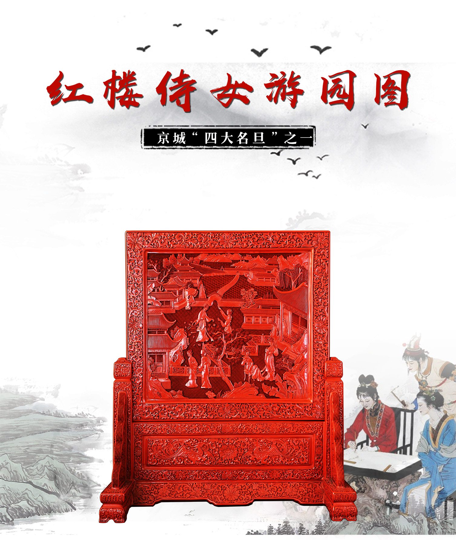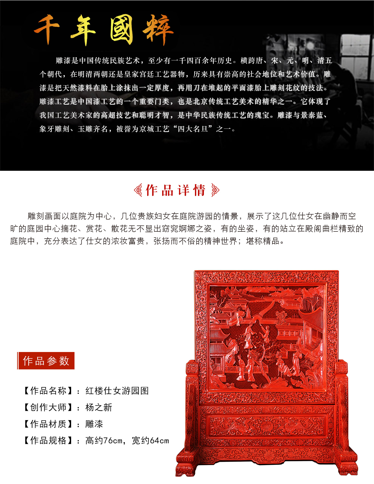 【中藝堂】杨之新 雕漆《红楼侍女游园图》