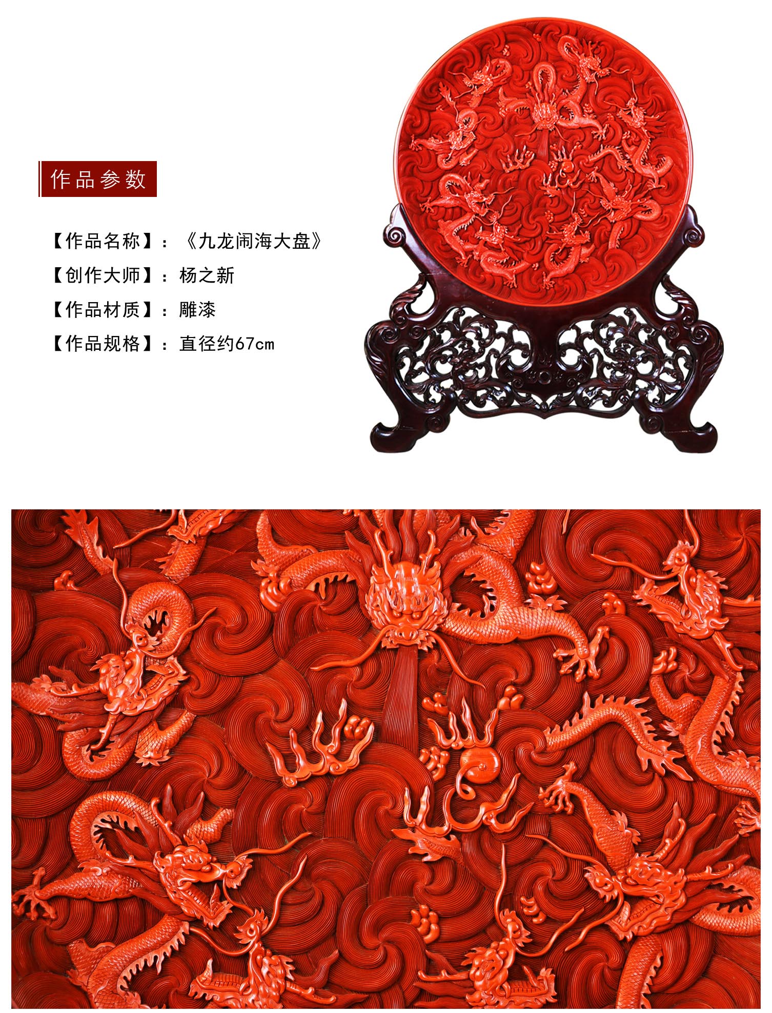 【中藝堂】杨之新 雕漆《九龙闹海大盘》