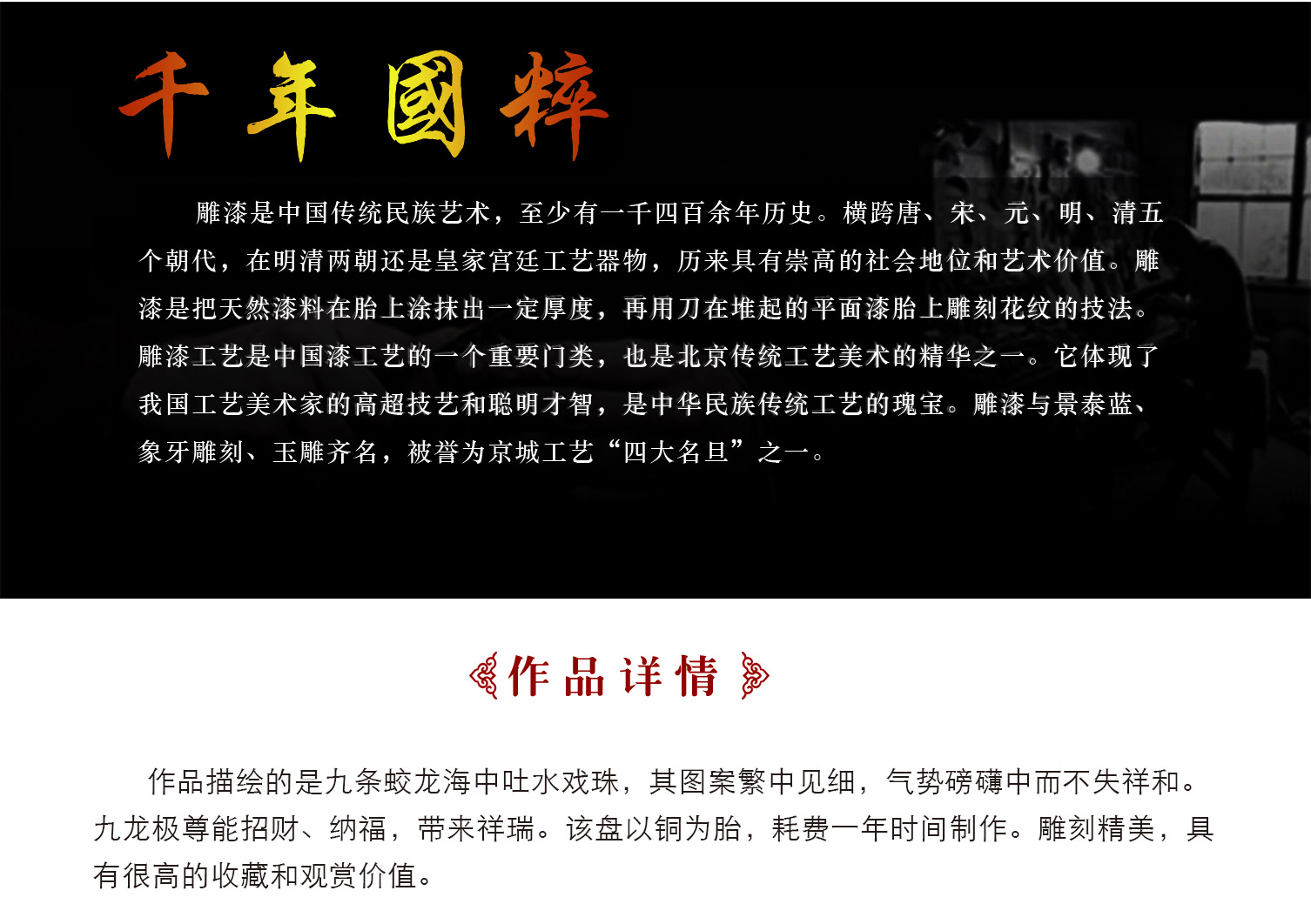 首页 > 錾刻丨紫砂丨雕漆 > 雕漆 > 杨之新 > 【中藝堂】杨之新 雕漆《九龙闹海大盘》