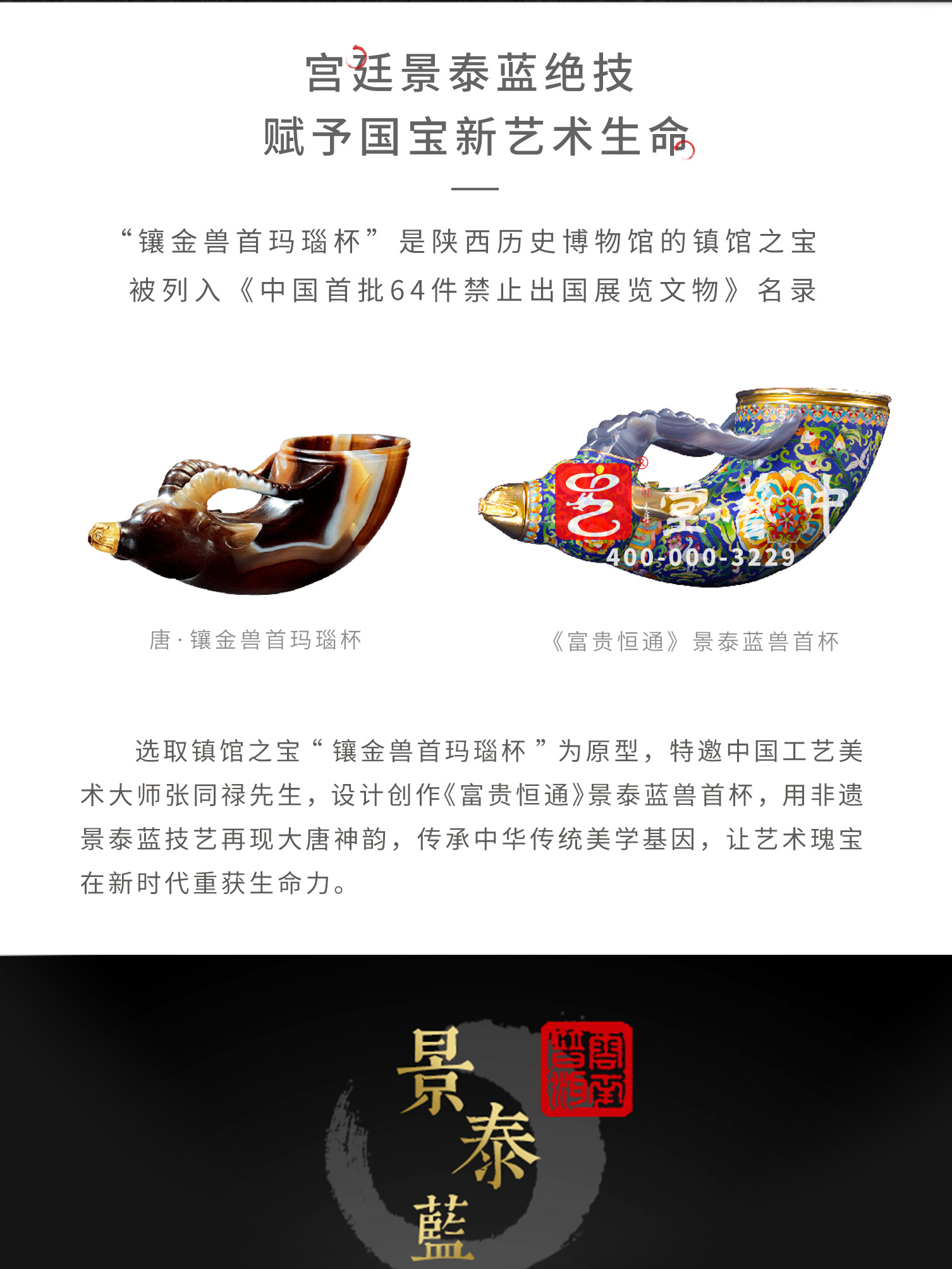 《富贵恒通》张同禄 景泰蓝 八大博物馆馆藏 兽首杯