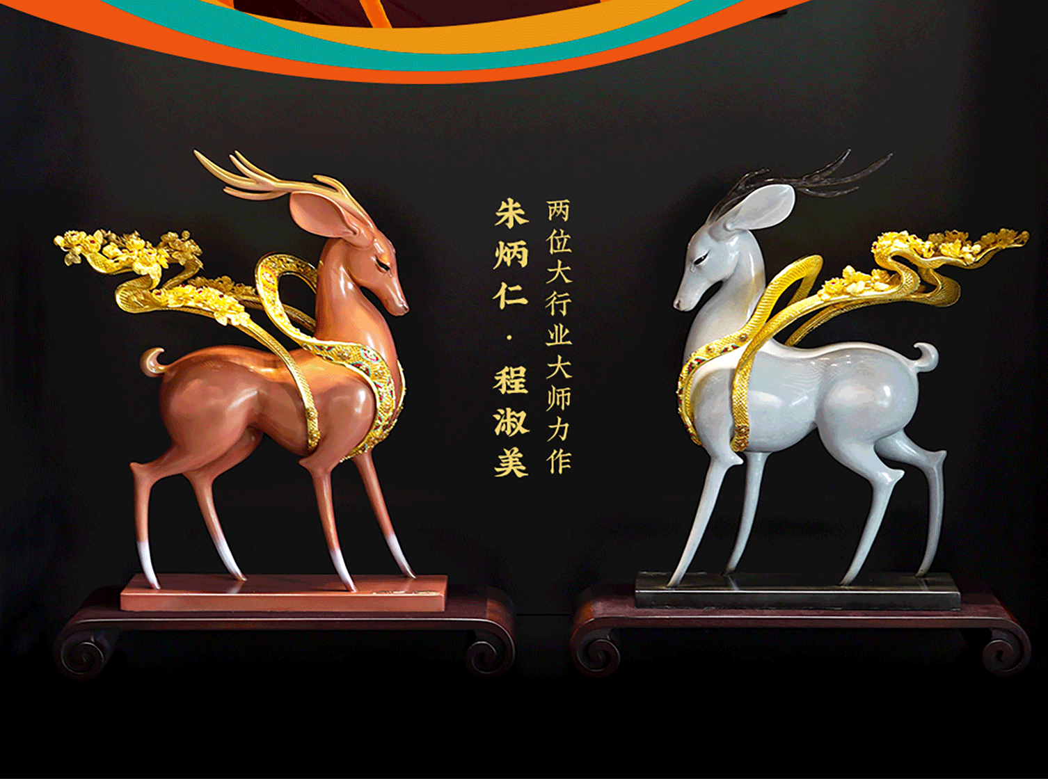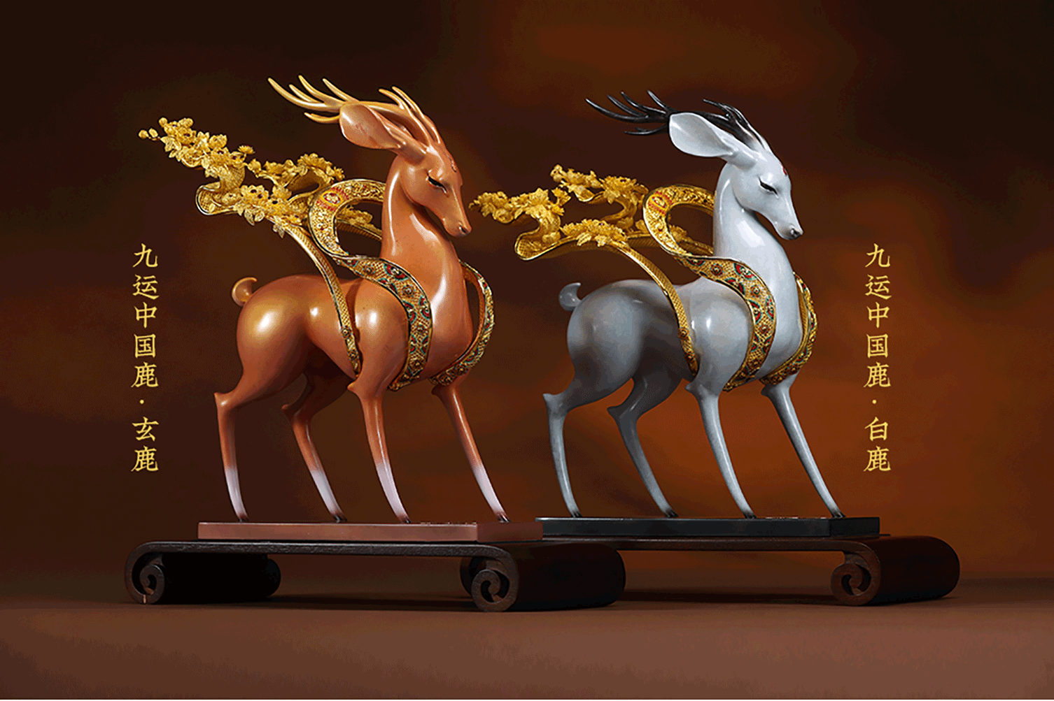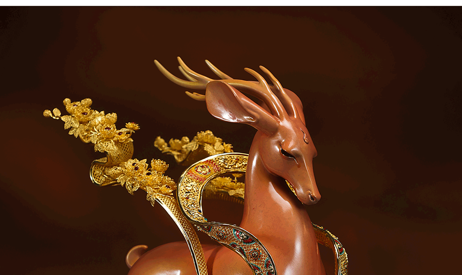 《九运中国鹿》朱炳仁程淑美联合创作 铜雕与花丝镶嵌镀金祥鹿
