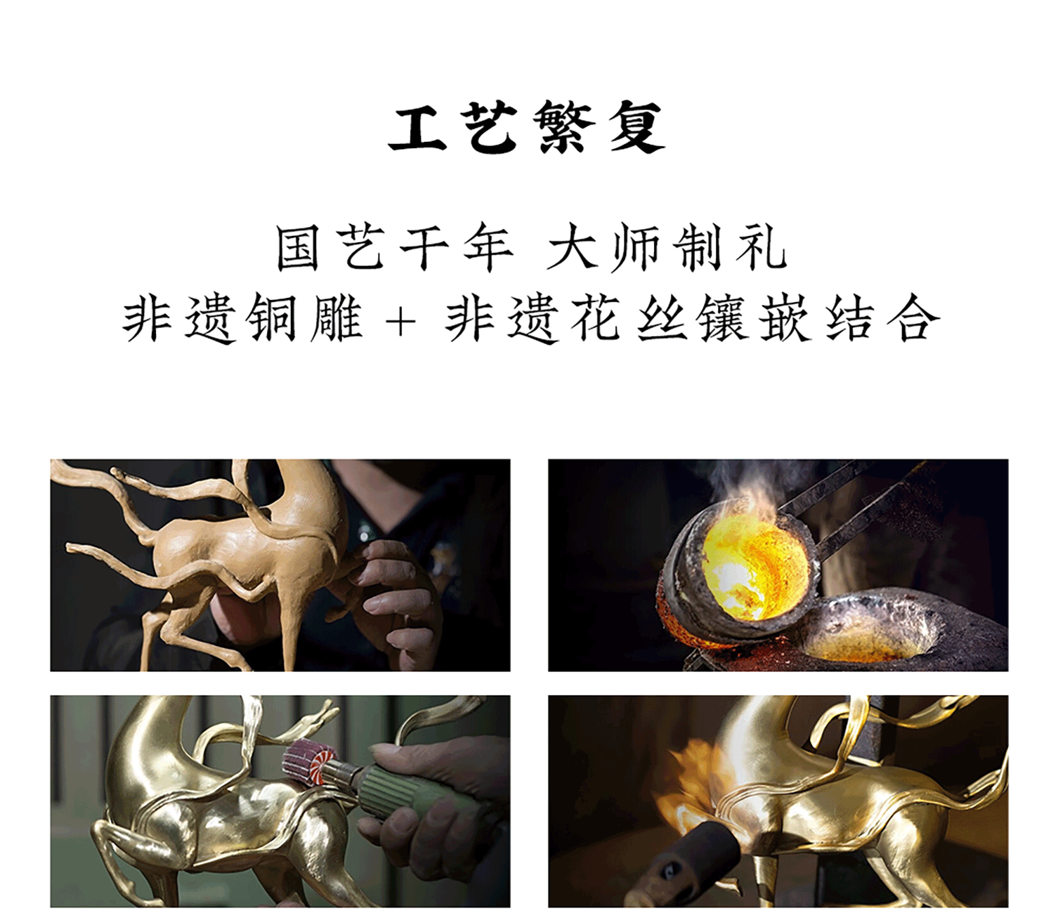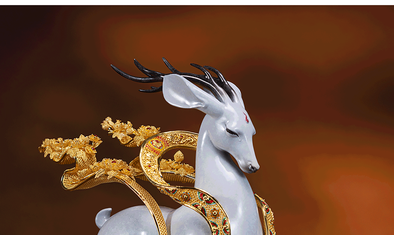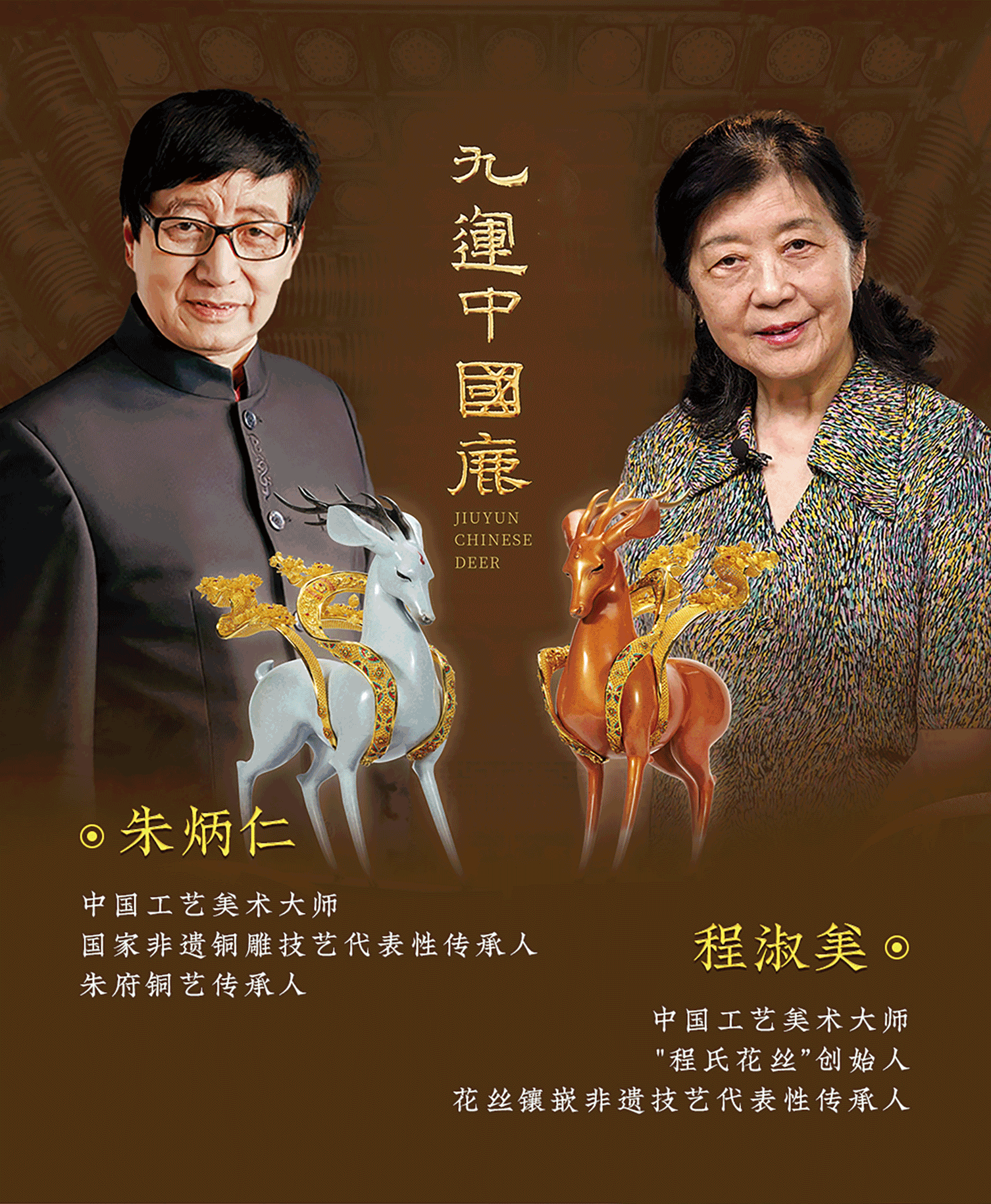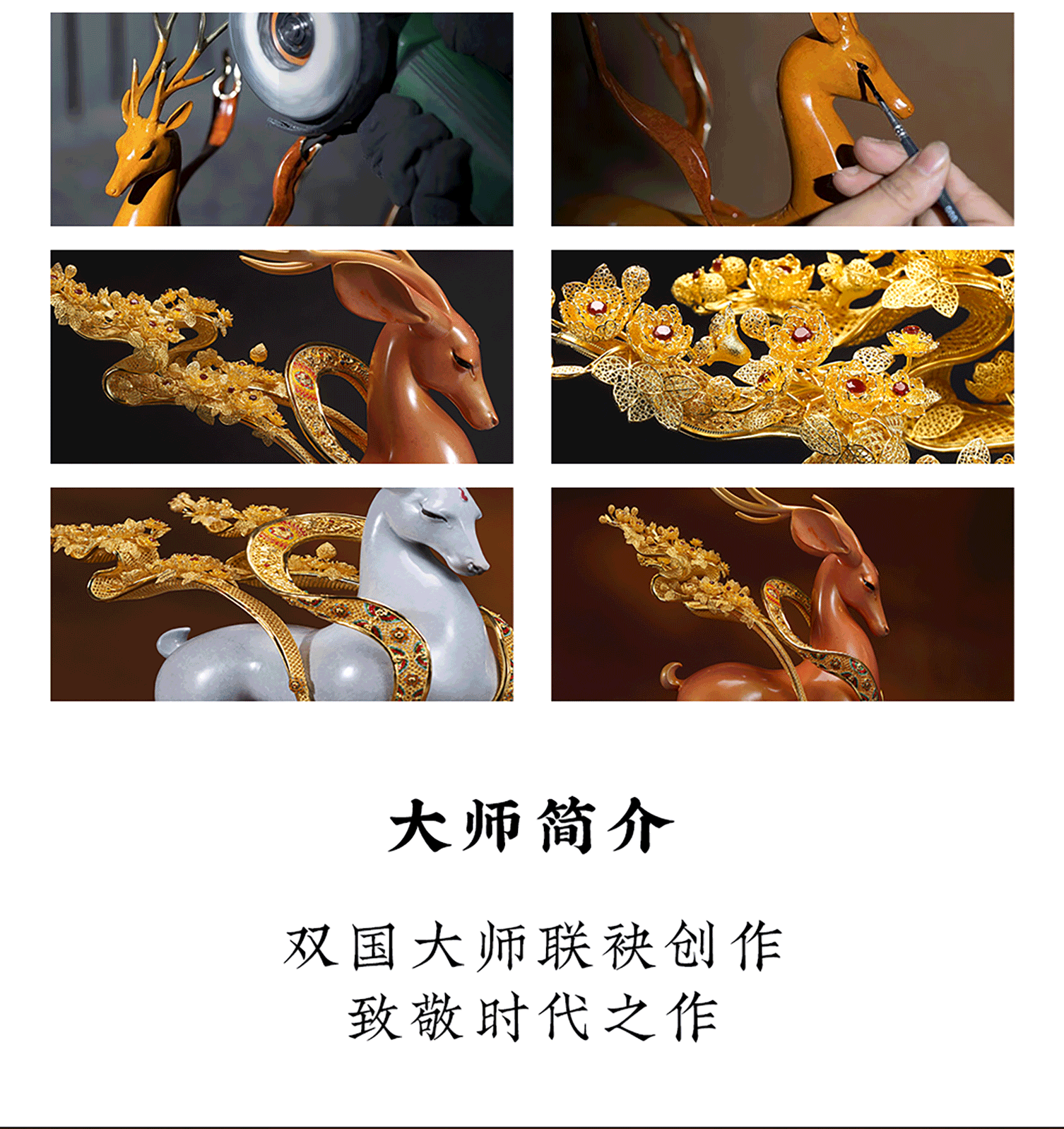 《九运中国鹿》朱炳仁程淑美联合创作 铜雕与花丝镶嵌镀金祥鹿