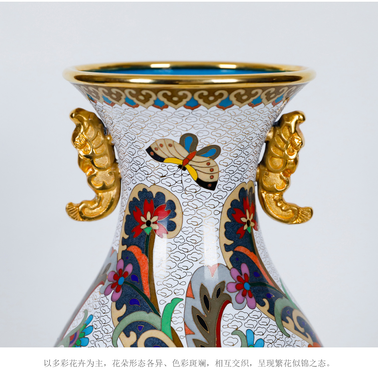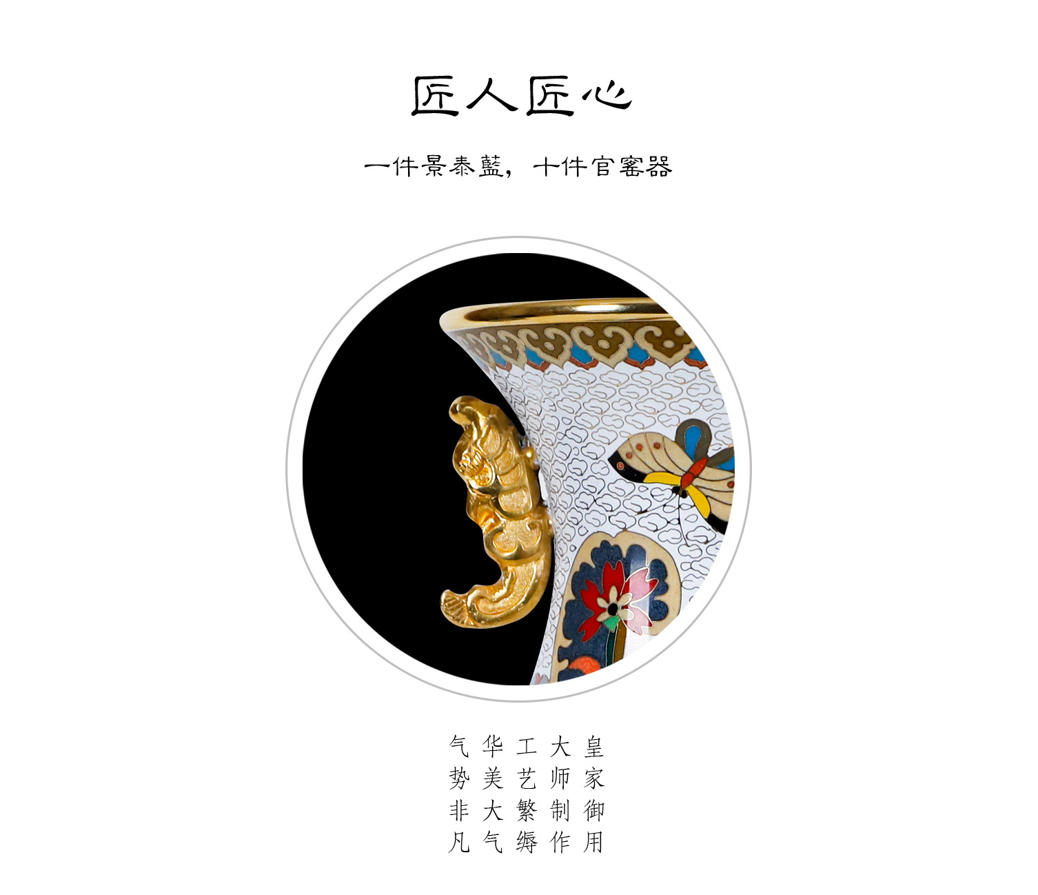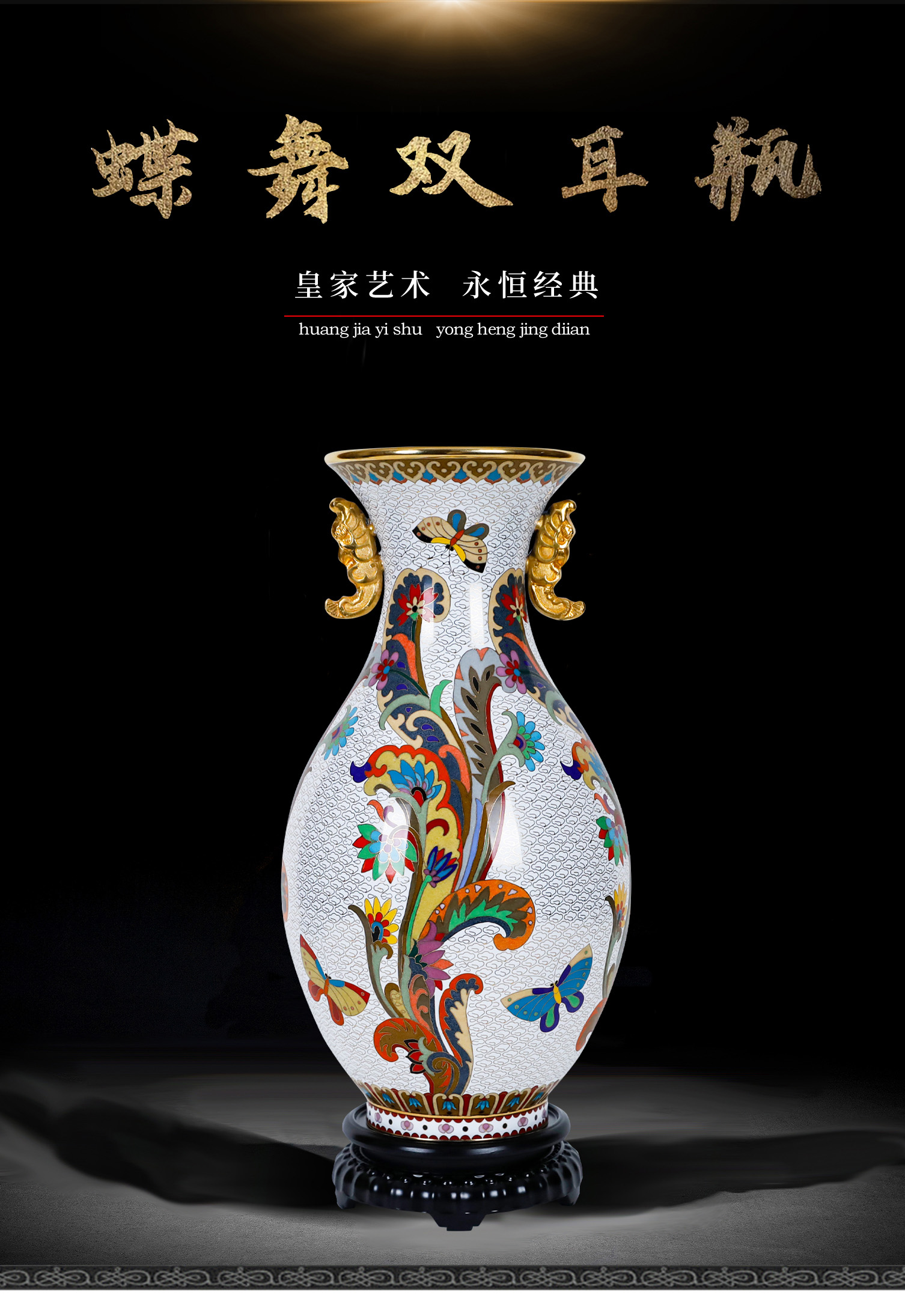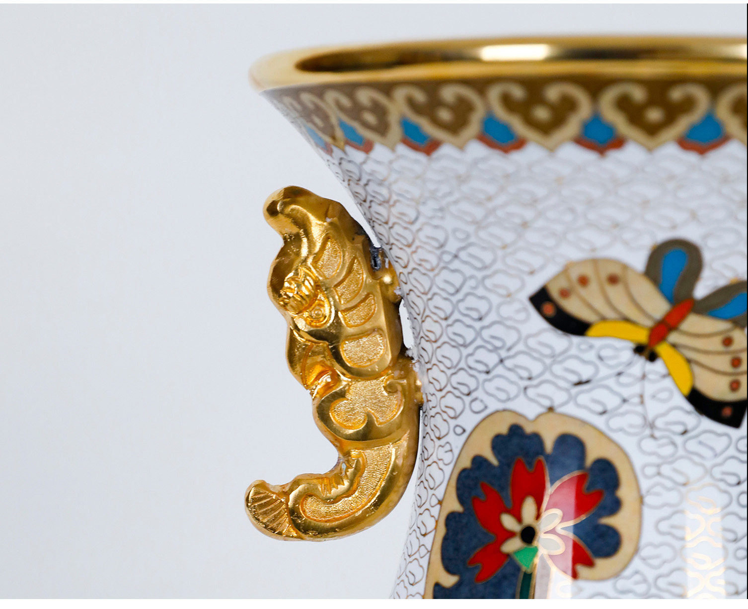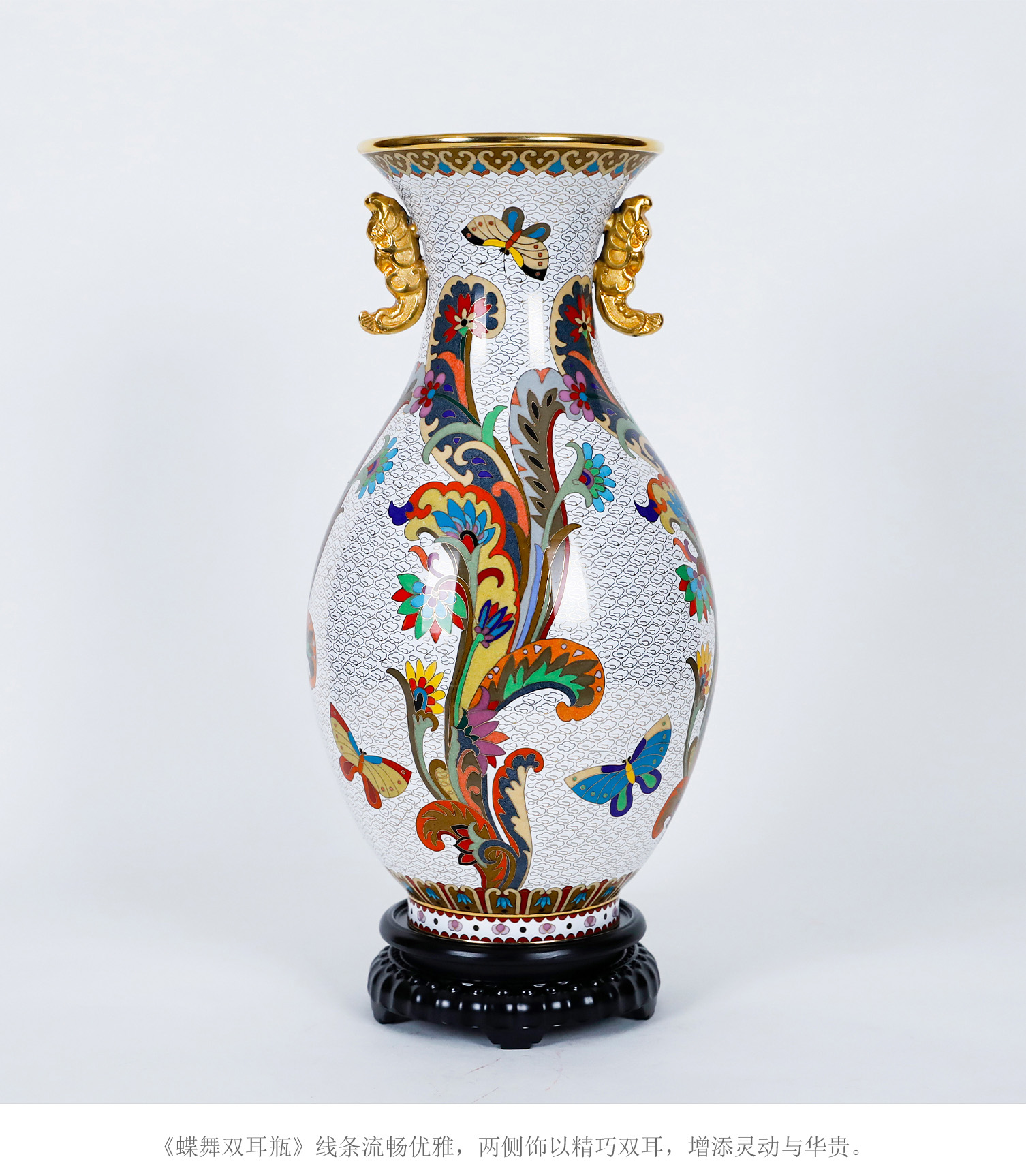 霍铁辉大师匠心之作:《蝶舞双耳瓶》景泰蓝,方寸之间的蝶舞翩跹与生机盎然​