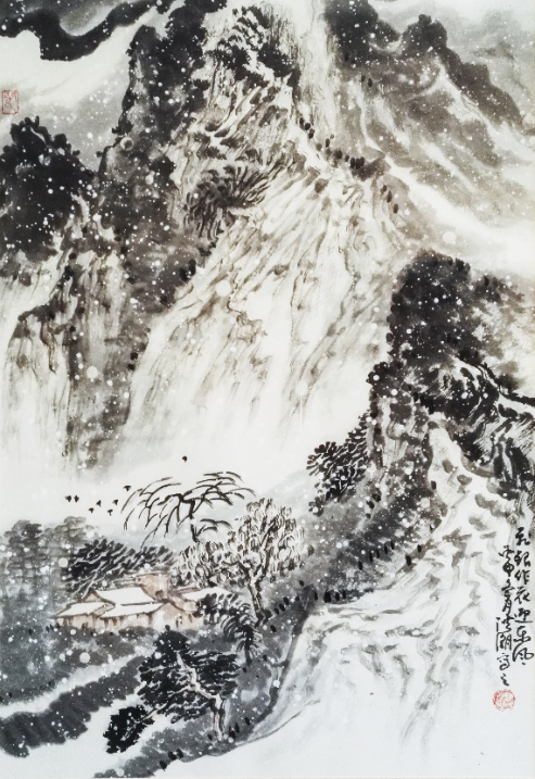 这些中国画,无论大幅巨作或寸作,无不构图严谨井然,笔墨超然潇洒。这些中国画,人们会体会到法从理生、笔随情纵的中国画精髓。