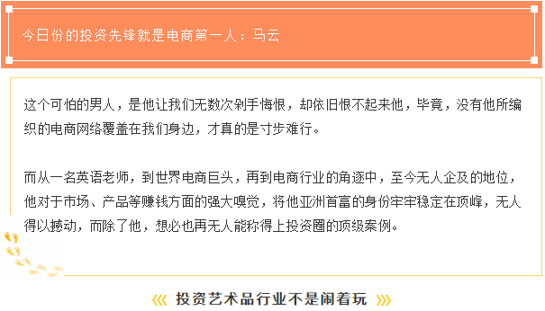 以马云的亲身案例结合时代背景来看,如今连国家部门都在号召文化兴国,文化艺术品行业的发展必将越来越兴盛。
