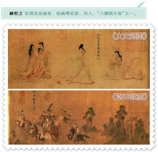 山水画的初现依据可查的话,大约出现在东晋时期顾恺之画家的两幅人物图中,《女史箴图》和《洛神赋图》。