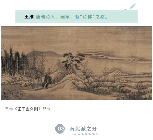 唐代山水画的演变发生重大变革,出现了两种不同风格的山水,一是以展子虔开启并为之后的画家所发扬光大的青绿山水,一是以诗人王维所开创的水墨山水。