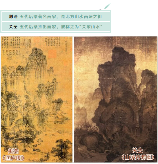 北派山水的代表画家荆浩、关仝,以气势磅礴展现北方巍峨山脉。