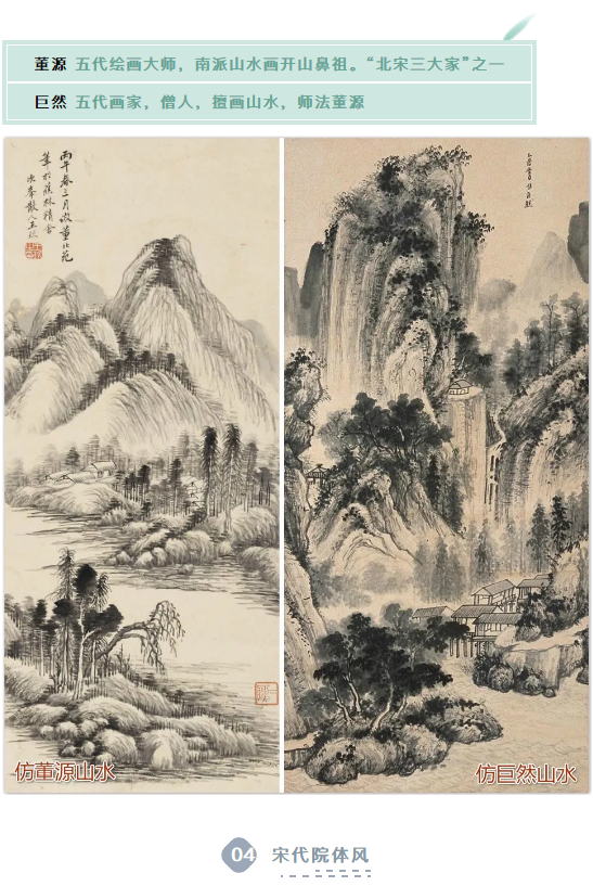 南派山水以南唐画家董源、巨然为代表,以柔美秀丽展现江南风光。