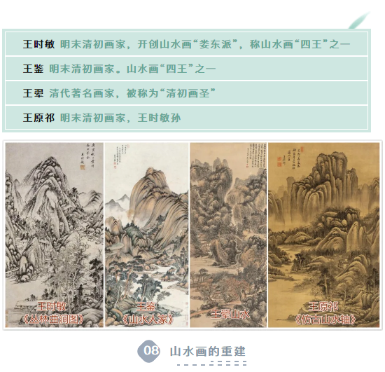 清时期在西方文化入侵的影响下,传统山水画开始与西方绘画融合,更注重技法的探索,所以这一时期的技法风格多为改变和创新,但清代山水画意境的发展却停滞不前,甚至使传统山水画的传承逐渐走向没落。