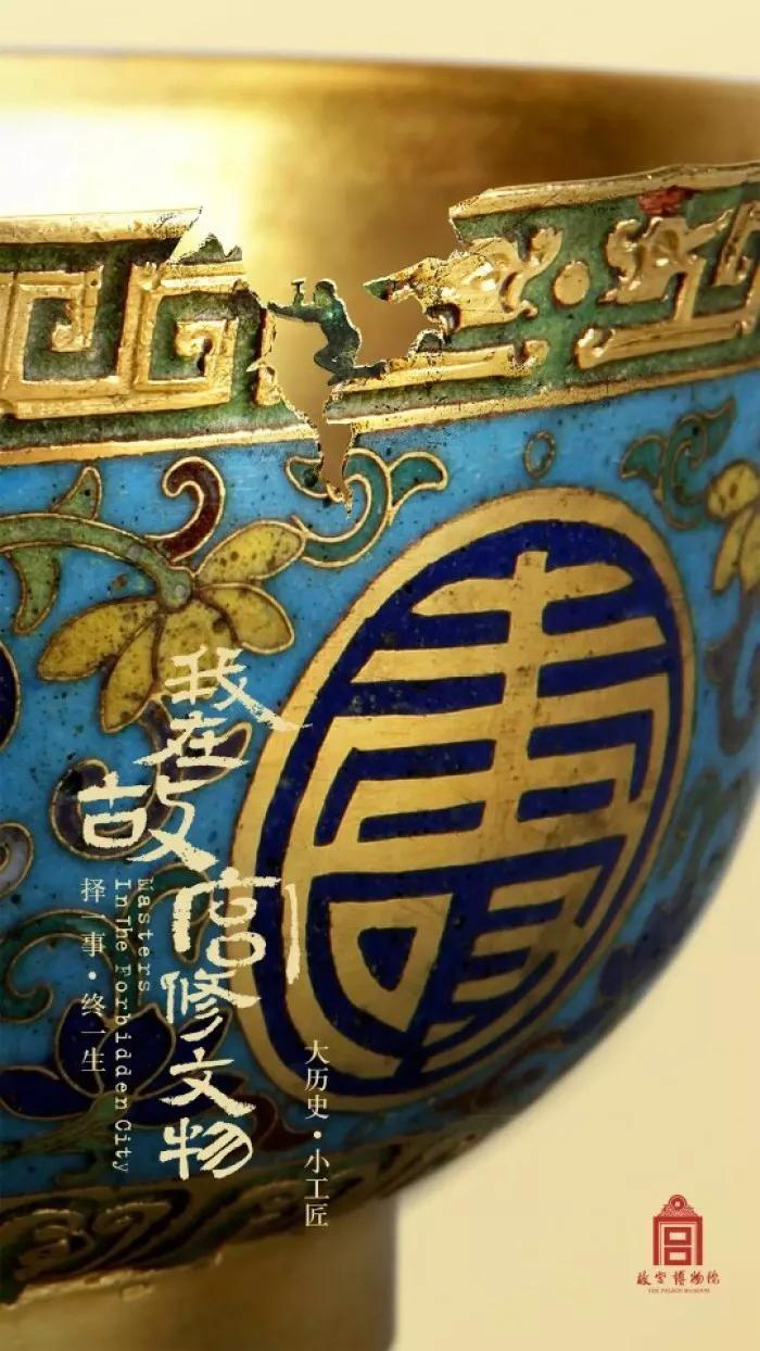 此次故宫600年,国宝再造【掐丝珐琅勾莲纹《万寿无疆》碗、盘】,是故宫文物民间传承“匠心之作”。
