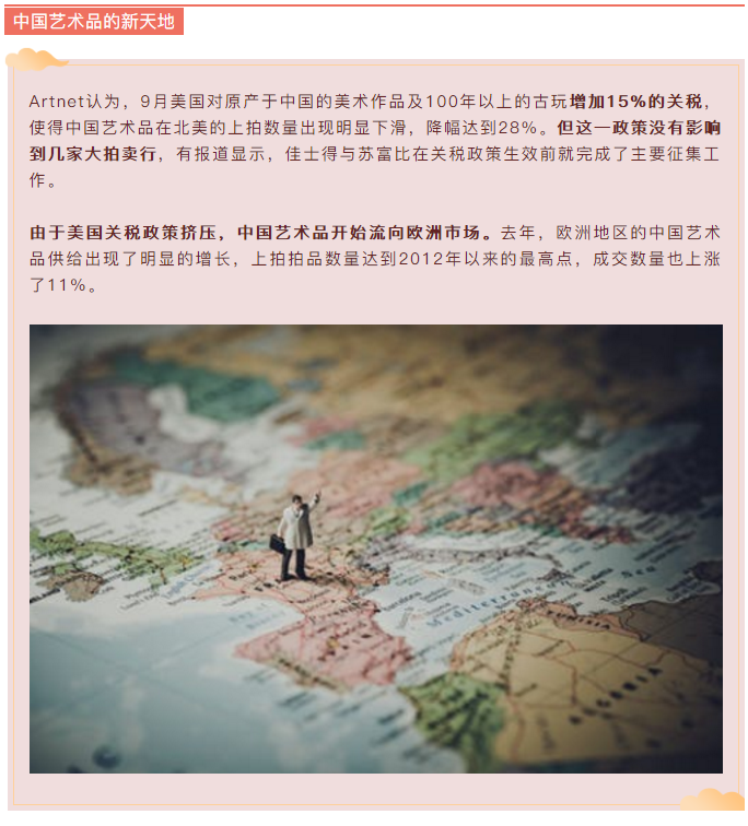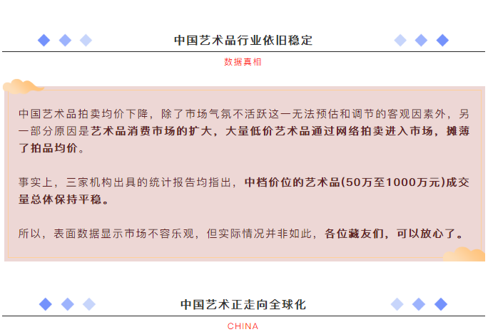 也就是说,市场行情不稳定加之受到个别国家打压的情况下,中国艺术品市场并没有太大波澜,以中国