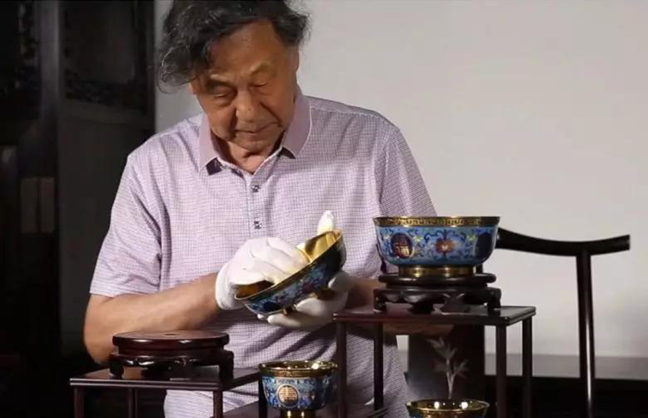 中国工艺美术大师米振雄,以60年珐琅巨匠从业资质,倾力全新设计督造,“拓本式”再现乾隆专用国宝。造型的曲线比例、纹饰的勾勾蔓蔓花瓣个数、莲瓣纹的个数、釉色等都追求一比一级别的精度,碗身的“万寿无疆”四字更是严格按照文物笔势,与底款“子孙永宝”,皆用篆体。在掐丝方面,采用文物原作的双勾双线掐丝法,依照“拓本”标准,掐制纹饰的轮廓线,最大程度的保留了200多年前的丰满华丽的纹饰风韵,使缠枝莲纹饰更显蓬勃,富有生生不息之感。