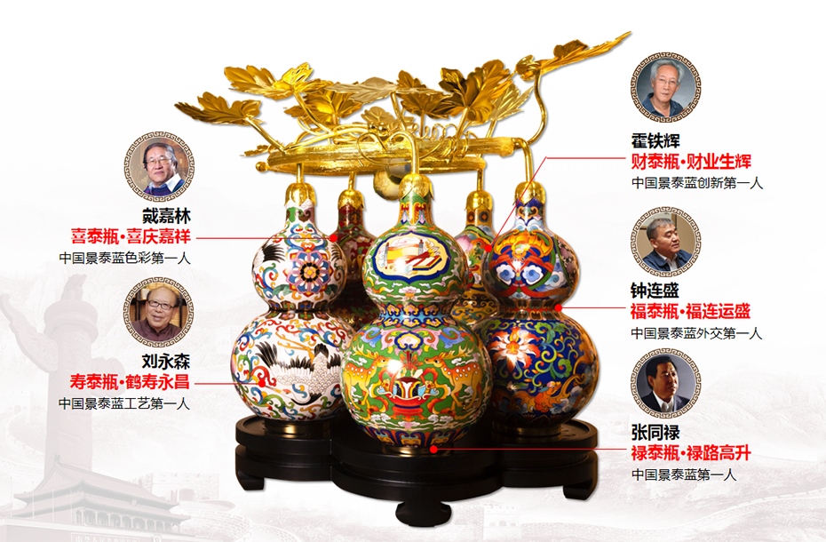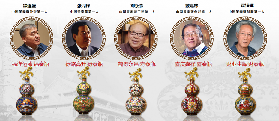 国礼储备中心 ·北京工美艺术研究院为建党百年献礼立项,从“德、艺、能”等多方面考量特别邀请五位景泰蓝界最具代表性的国宝级大师,以歌颂人民、歌颂时代为主题,创作出史上首款由五位国大师联袂创作的“景泰五大家·五福泰瓶”。