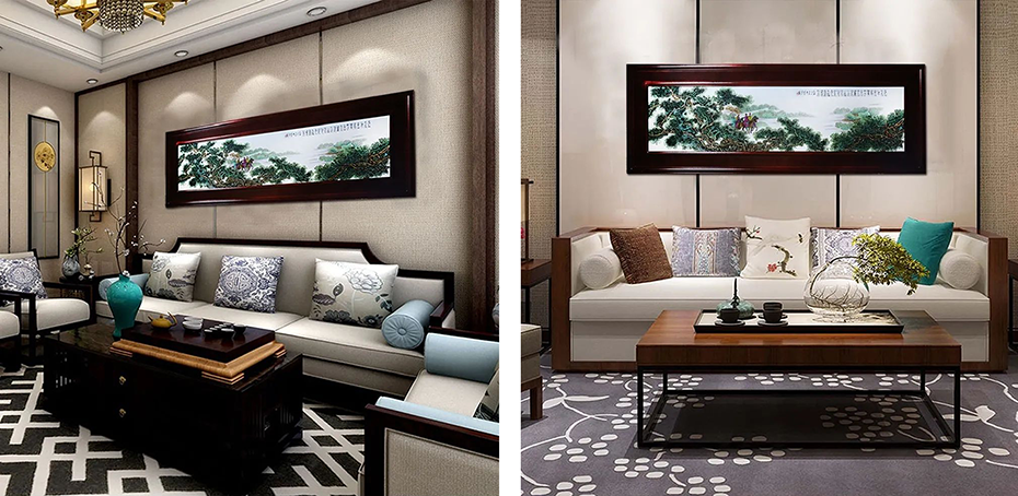 瓷板画可以填补墙面平淡无奇的状态,不同的房间考虑摆放不同风格的瓷板画,客厅、书房可以选择大气高雅的风格,卧室可以选择活泼温暖的小幅瓷板画,瓷板画和普通的书画相比更高端,品味也更独特。