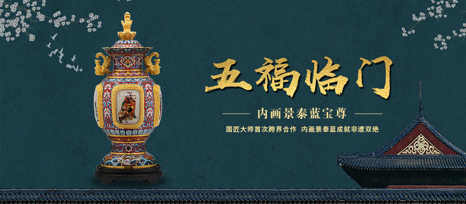 《五福临门》内画景泰蓝宝尊,器型采用故宫经典尊贵大器,高约70cm,纪念故宫建院600周年,集合掐丝珐琅、内画绘制、宝石镶嵌、錾刻、鎏金、铸造六大国宝工艺为一体,景泰蓝诞生于皇宫,独步皇宫600年,是帝王预制的艺术品。内画,是中国特有的皇家艺术,是皇宫贵族地位与身份的象征,传承皇家工艺,代表皇家水准,匠心巨制,融气度、高度、深度、力度于一身,彰显着作品的奢华尊贵,堪称国礼之典范!