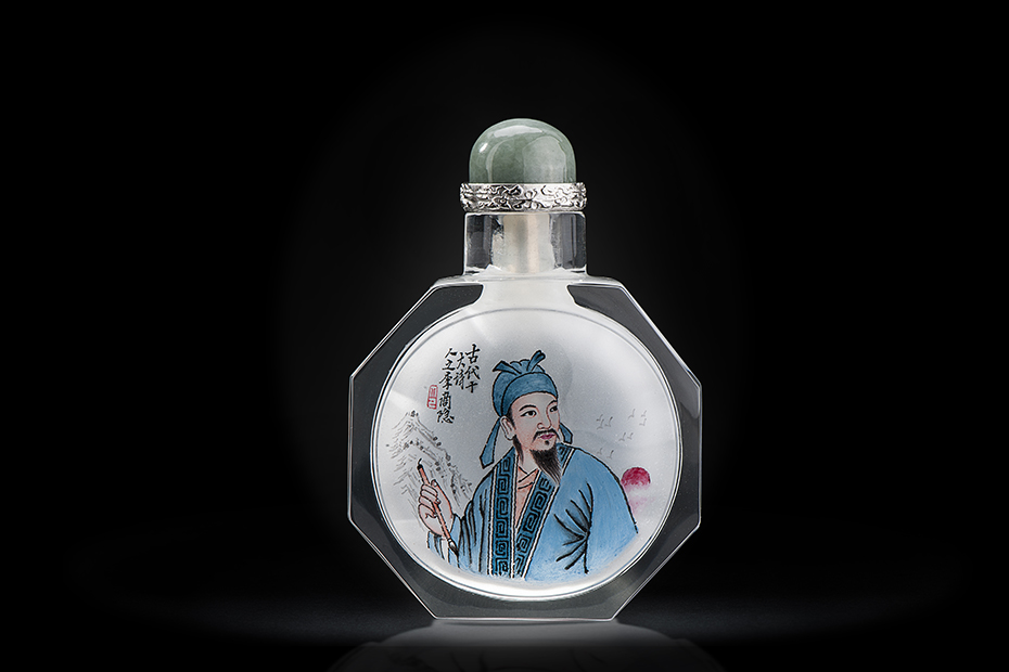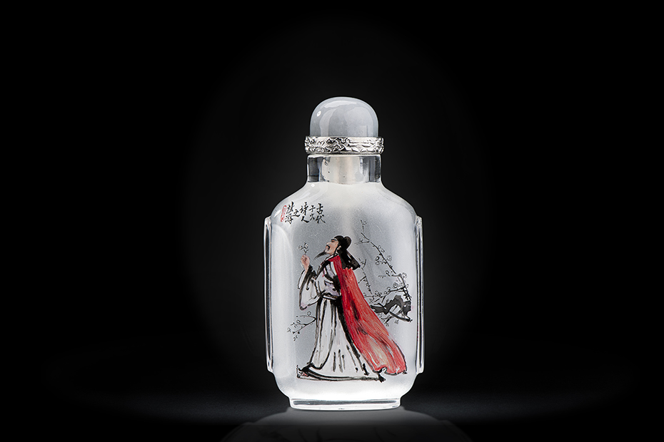 鼻烟壶以其精巧卓绝的制作技术荣登大雅之堂,成为供皇帝专用的内廷秘玩,被称为“集多种工艺之大成於一身的袖珍艺术品”,而内画鼻烟壶更是被世界誉为鬼斧神工的艺术杰作。鼻烟壶以独特的造型艺术与中国的传统书画艺术巧妙结合,达到“寸幅之地具千里之势”的艺术效果。