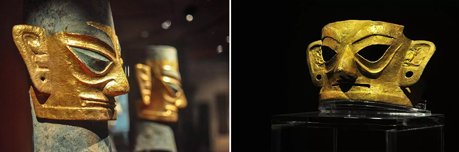 在本次发掘的黄金面具之前,三星堆出土过六个黄金面具,其中四件是带着面具的青铜头像。