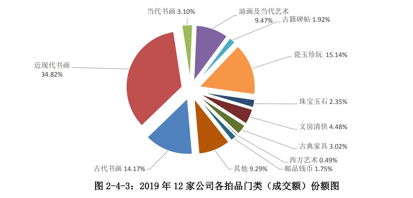 中国拍卖行业协会艺委会公开数据最新发布的《中国拍卖行业发展报告 2019》指出,在12家公司各拍品门类中,书画品类占了六成。