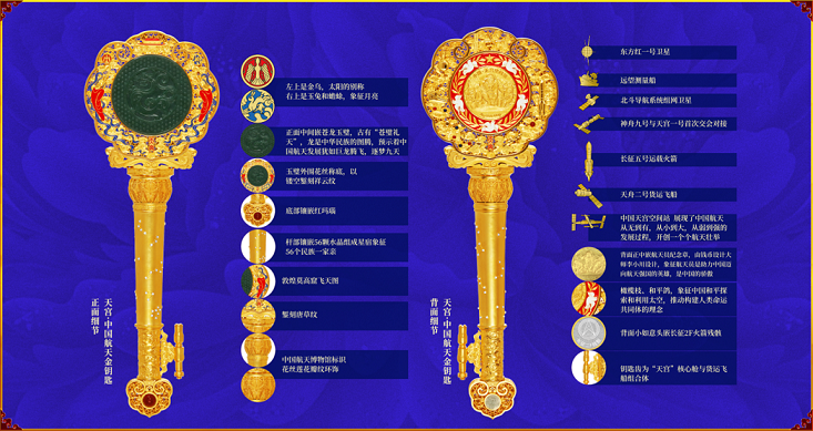 为隆重纪念中国航天进入空间站时代,中国航天博物馆立足航天文化传承,将航天精神与中国传统文化融合,以文化之礼铭记中国航天进入空间站时代这一伟大征程,首款特许授权作品——航天国礼《中国天宫·金玉钥匙》隆重面世!