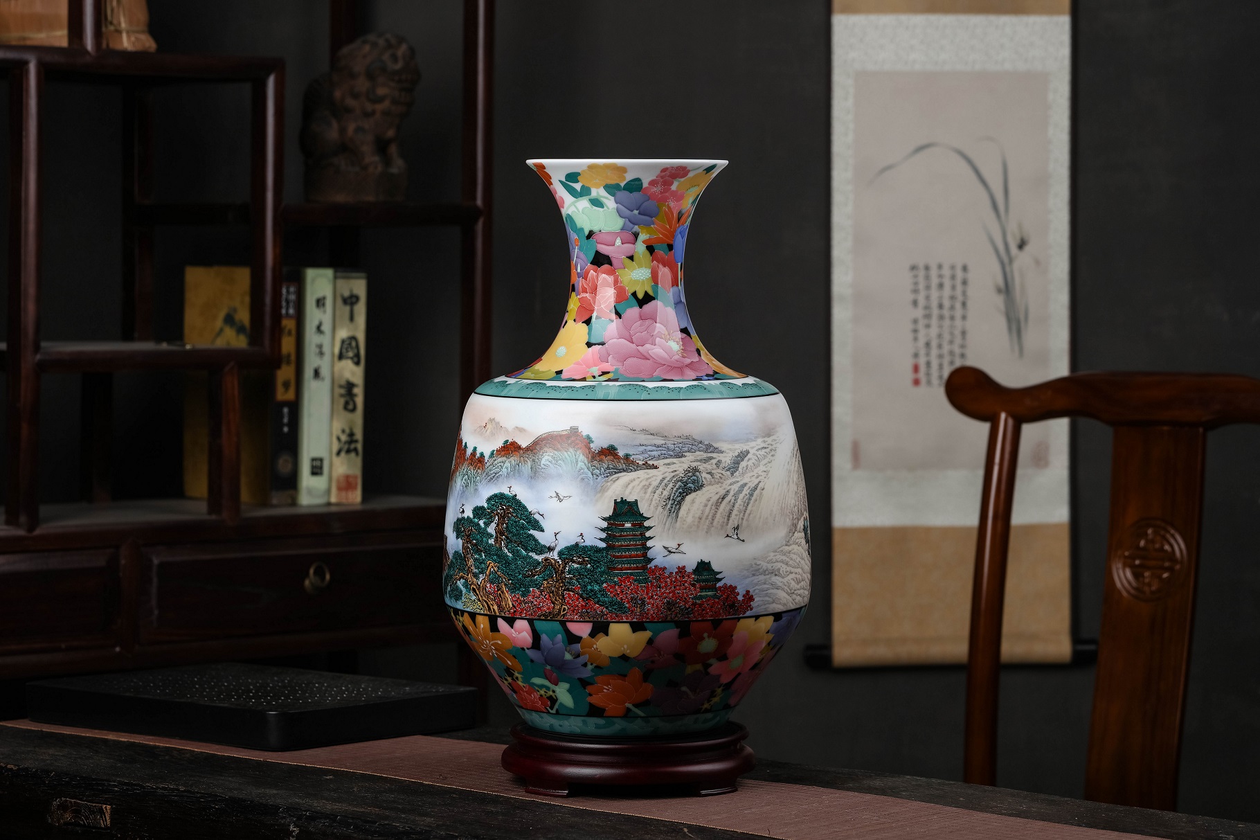 《盛世辉煌》中国尊,由两位大师首次跨界打造。是一件汇集两位大师80年精湛的陶瓷绘画技艺和技艺之精髓,囊括大师一生心血的艺术珍品。