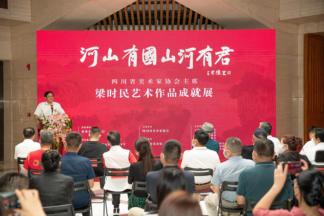 2022年7月23日,“河山有国,山河有君”——四川美协主席梁时民艺术作品成就展在北京炎黄艺术馆举行。现场主要展出了百余幅梁时民主席以天府山水风光为题材的作品。