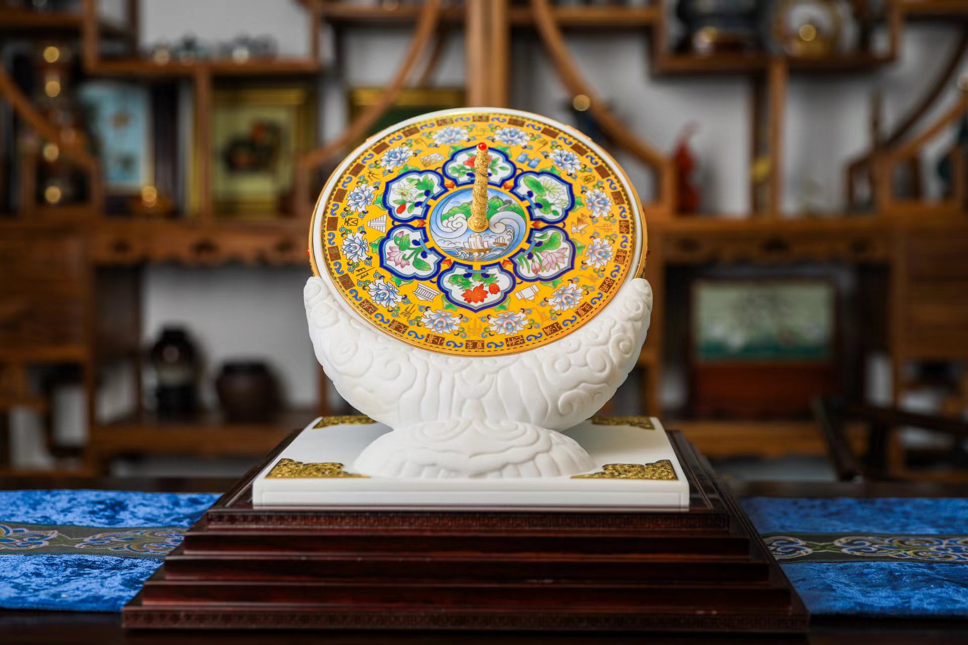 以故宫太和殿门前为日晷为原型的《世纪荣光》景泰蓝日晷
