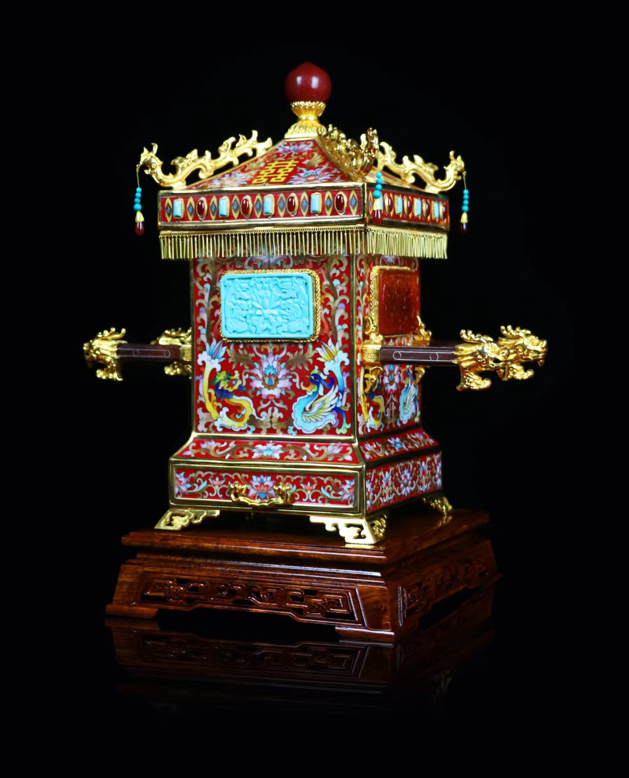 以中国古代花轿为艺术灵感的景泰蓝国宝六绝《喜事临门》等等