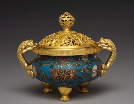掐丝珐琅菊花纹螭耳熏炉·明中期