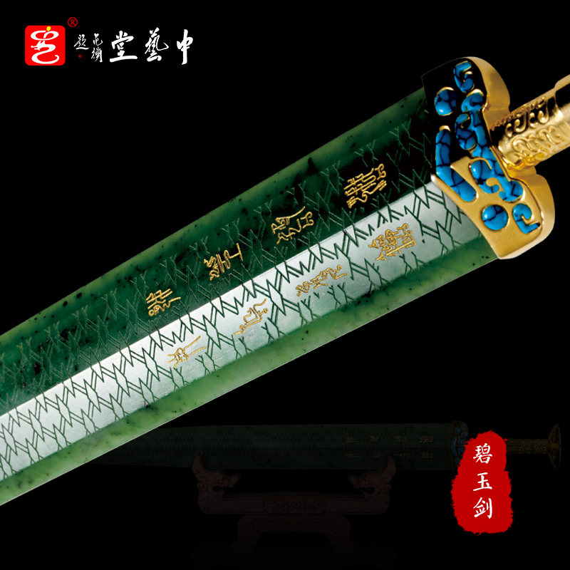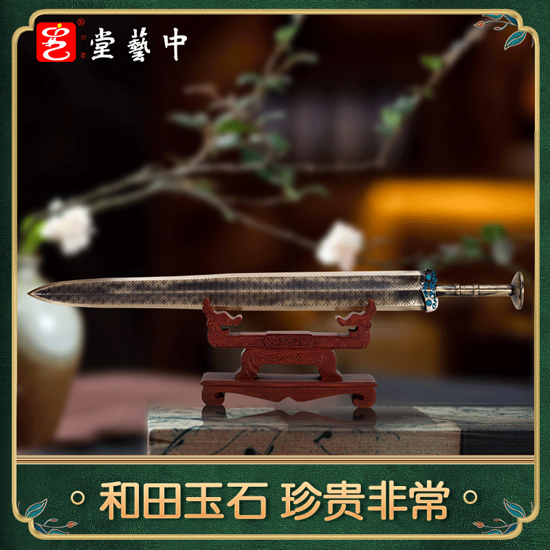 此外,这把剑由中国工艺美术大师袁广如、中国玉石雕艺术大师袁霖、沈广隆剑铺第四代掌门沈新培大师强强联手,以传承青铜器文化结合玉文化的再创新为主要特色,使2000年来古韵和现代审美有机结合,在借鉴古人的艺术思想、工艺特点、技法运用等前提下,推陈出新,集国宝、文物、大师、珍惜和田玉、纯金、纯银等于一身。