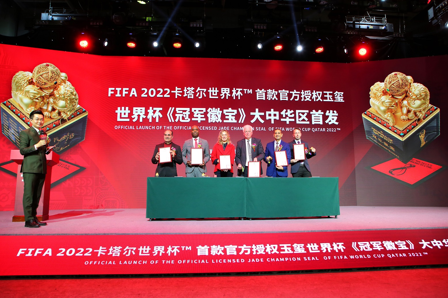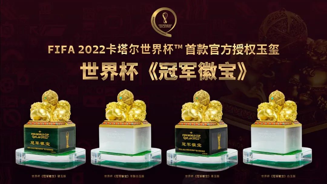 10月29日,国际足球联合会(FIFA国际足联)首款官方授权玉玺——世界杯《冠军徽宝》在大中华区正式发行,这是世界杯历史上首次以中国传统“玉文化”“玺文化”为主创作的世界杯纪念作品,它将浓厚的中国传统元素与即将到来的世界杯以最和谐的方式融合,将体育精神与地域文化紧密联系,为世界杯纪念品的设计制作创意开启了崭新篇章。
