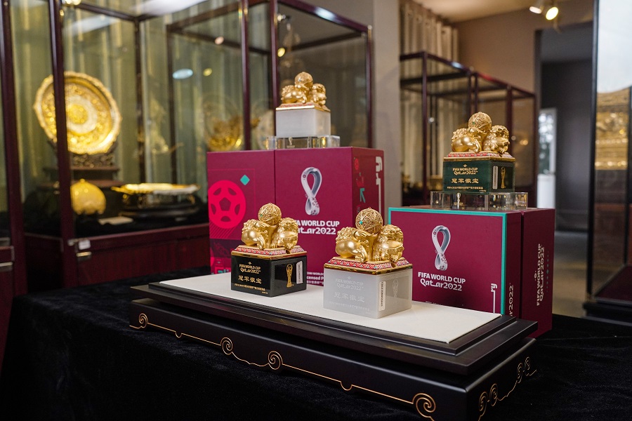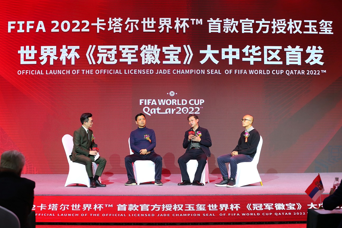 2022年10月29日,FIFA 2022卡塔尔世界杯首款官方授权玉玺——世界杯《冠军徽宝》大中华区正式首发,从东方文化、中式审美、中国传统工艺等方面展现出巧夺天工精彩绝伦的中国非遗技艺,这也为非遗文化遗产的跨界与融合开拓出新天地。