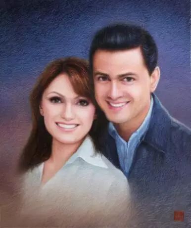 2014年某外国领导人夫妇访华时,我国领导人赠送其肖像