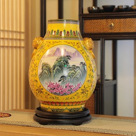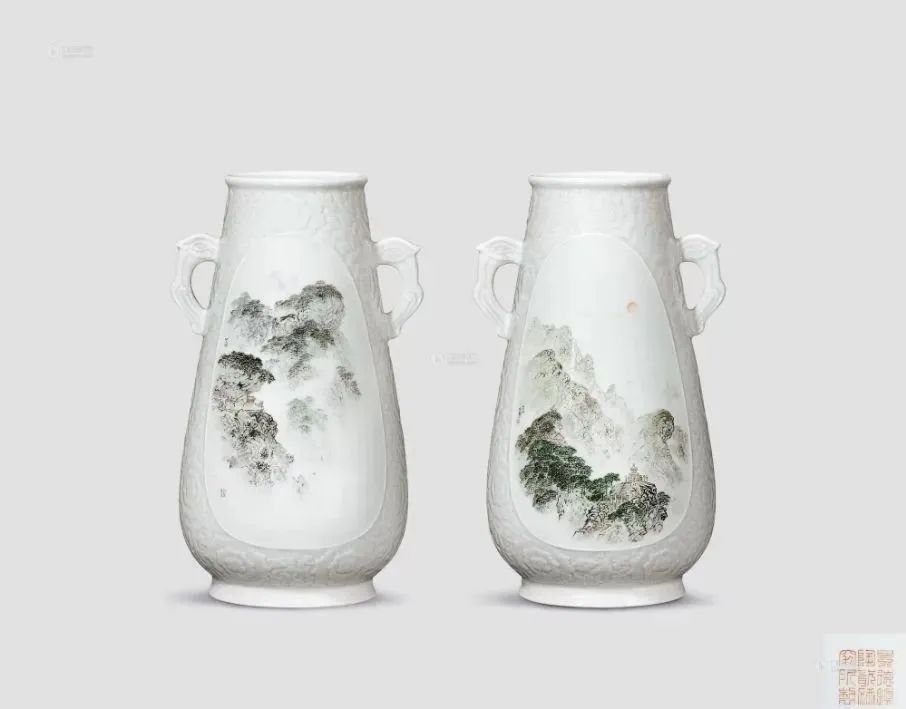 王锡良 庐山二景·颜色釉刻花粉彩双耳瓶
