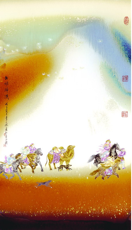 2011年,神舟八号搭载其创作的《飞天》瓷盘画稿等三大件作品与天宫一号对接。