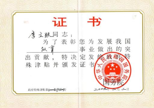 | 享受国务院特殊津贴专家