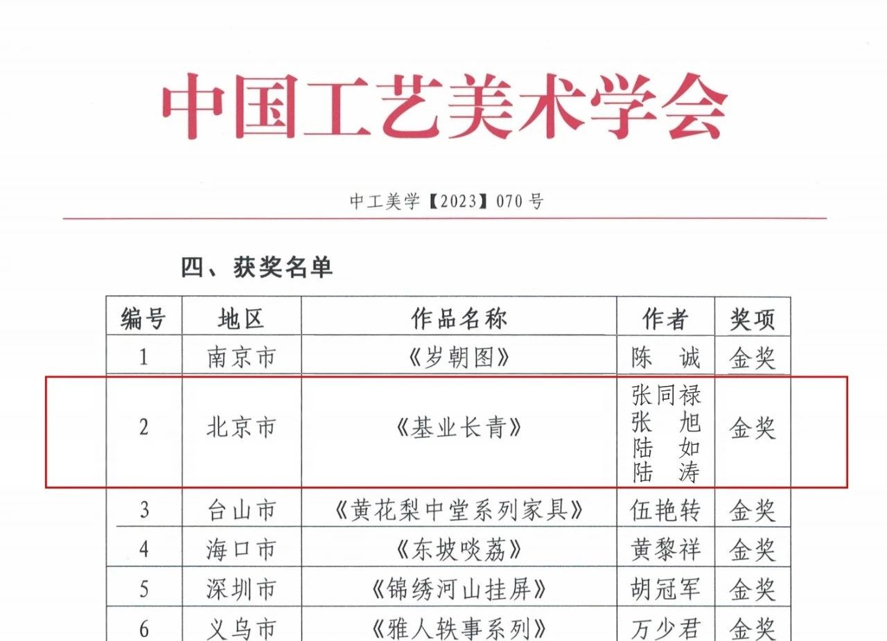 这是中国工艺美术领域的至高奖项和荣誉,金光闪闪的奖杯,召示着《基业长青》传承尊从此成为当代中国工艺美术最高级别的作品,也将中国的工艺美术艺术,推向了一个“传承创新”的巅峰境界。