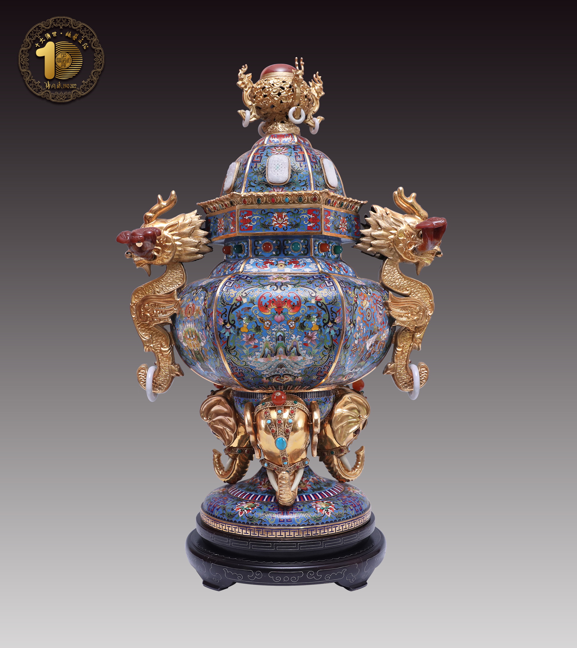 张荣(景泰蓝研究专家,故宫博物院研究员):“景泰蓝是皇家工艺,从古而今,从皇家走向百姓,非常不容易。盛世六和如意炉大气华丽,充分体现了景泰蓝工艺最大的特点:皇家气派。