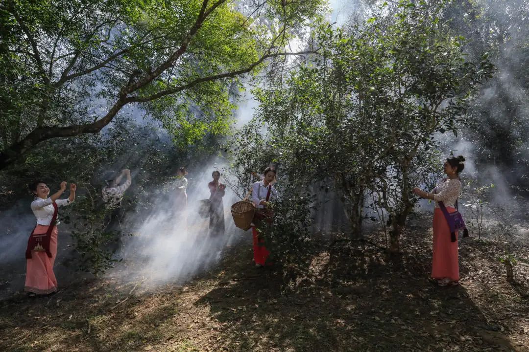 每年三四月,“作春茶”是景迈山人的头等大事,也是一年中最忙碌的时候。当秋天茶籽成熟,村民会在林间空地补种茶籽。古茶林是古树、新树、大树、小树共存,有机更新的古茶林,与祖祖辈辈景迈山人的建设逐步形成了“山共林、林生茶、茶绕村”的文化景观。