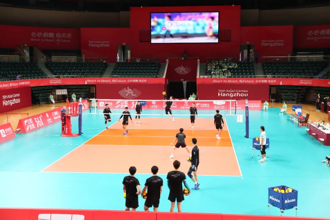 9月18日上午,湖州德清体育中心体育馆迎来杭州第19届亚运会排球项目首个训练日。