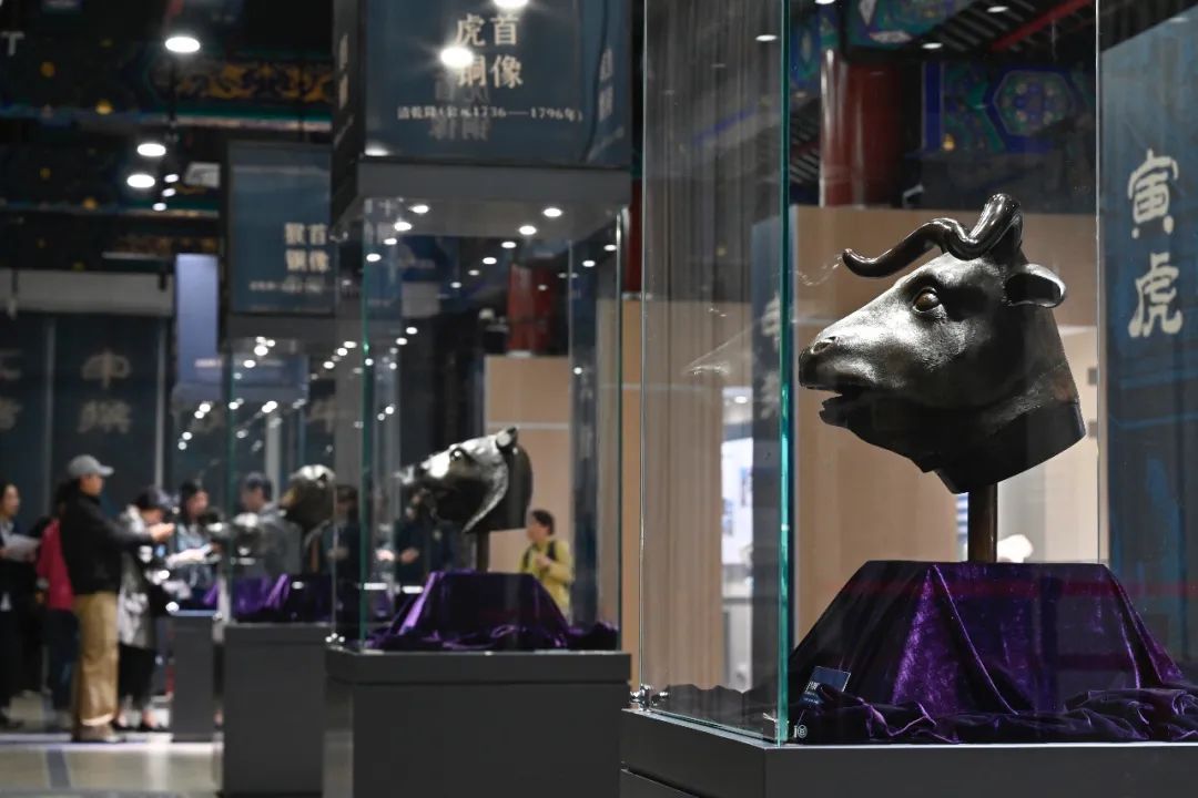 10月18日,由保利艺术博物馆收藏的圆明园十二兽首之牛首、虎首、猴首、猪首,在时隔163年后首次与马首重聚圆明园,一起亮相“五首重聚·故园新语”圆明园兽首铜像特别展览,展览持续到10月29日。此次展览在圆明园博物馆(正觉寺最上楼)与公众见面。