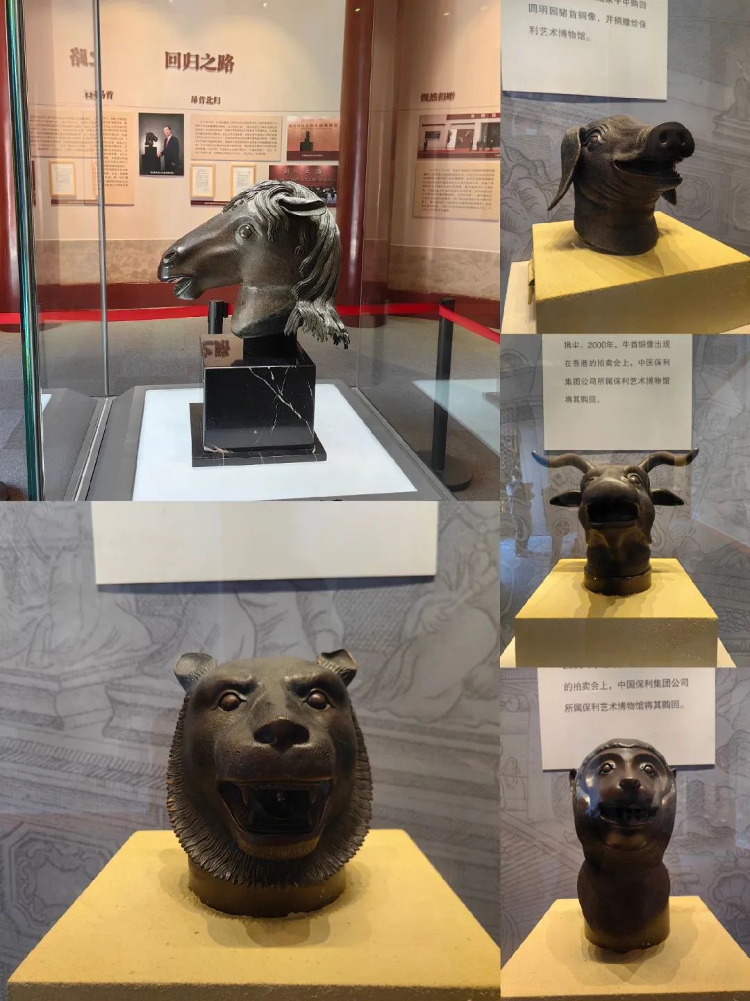 截至目前,虎首、牛首、猴首、猪首、鼠首、兔首、马首等七尊兽首已回归祖国。2018年,一件疑似流失龙首的拍品曾现身拍场;蛇首、羊首、鸡首和狗首至今仍下落不明。