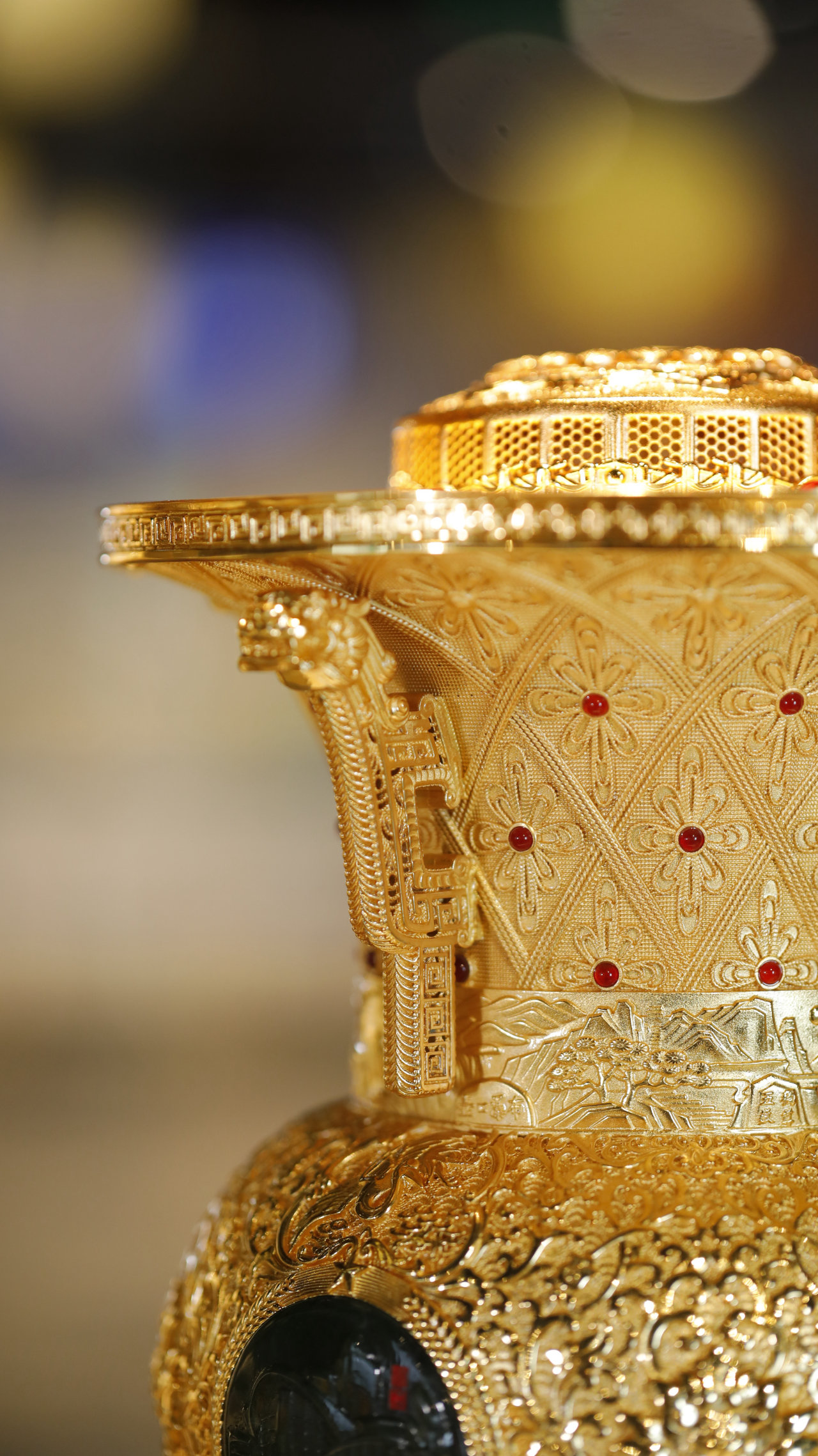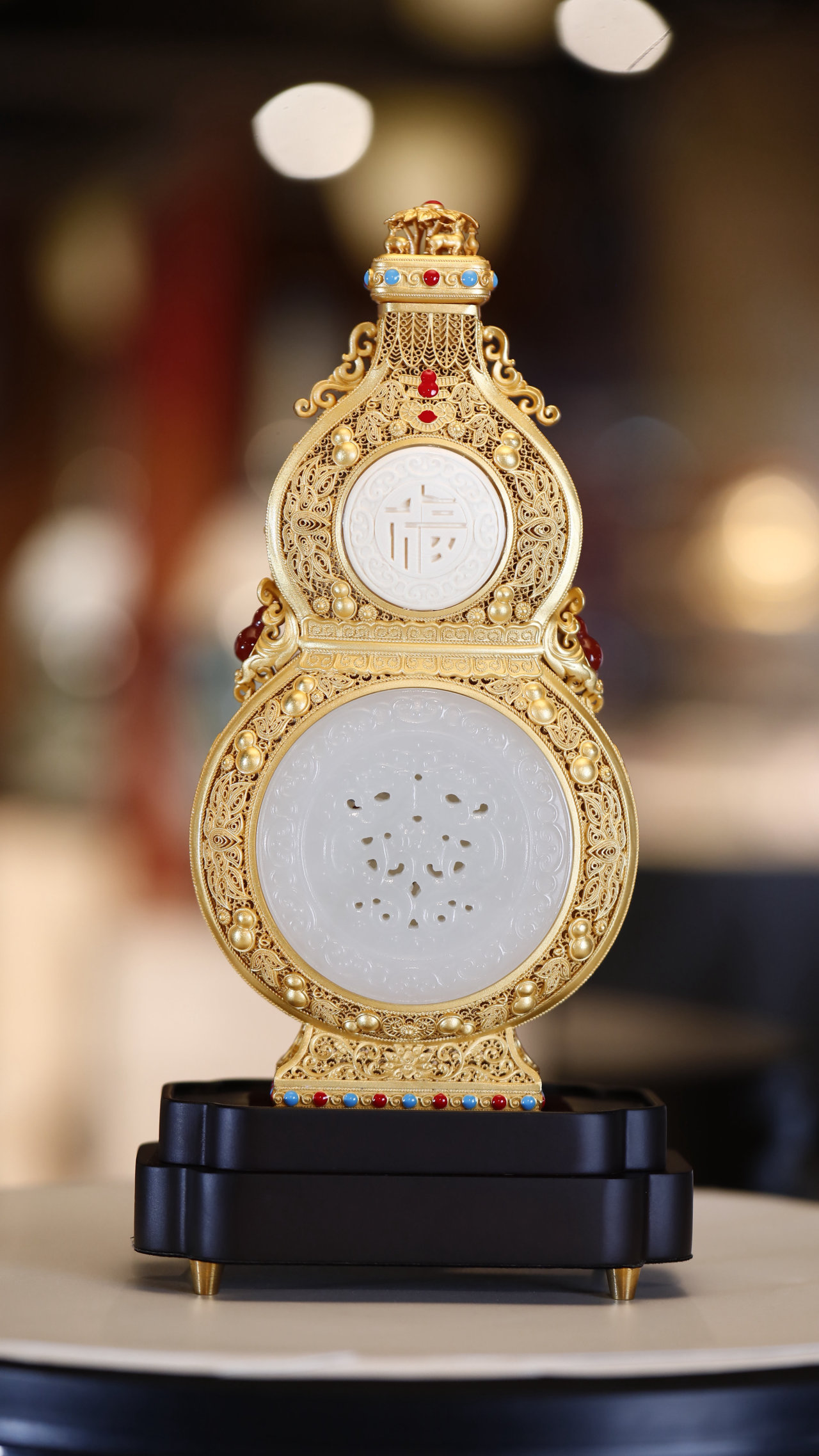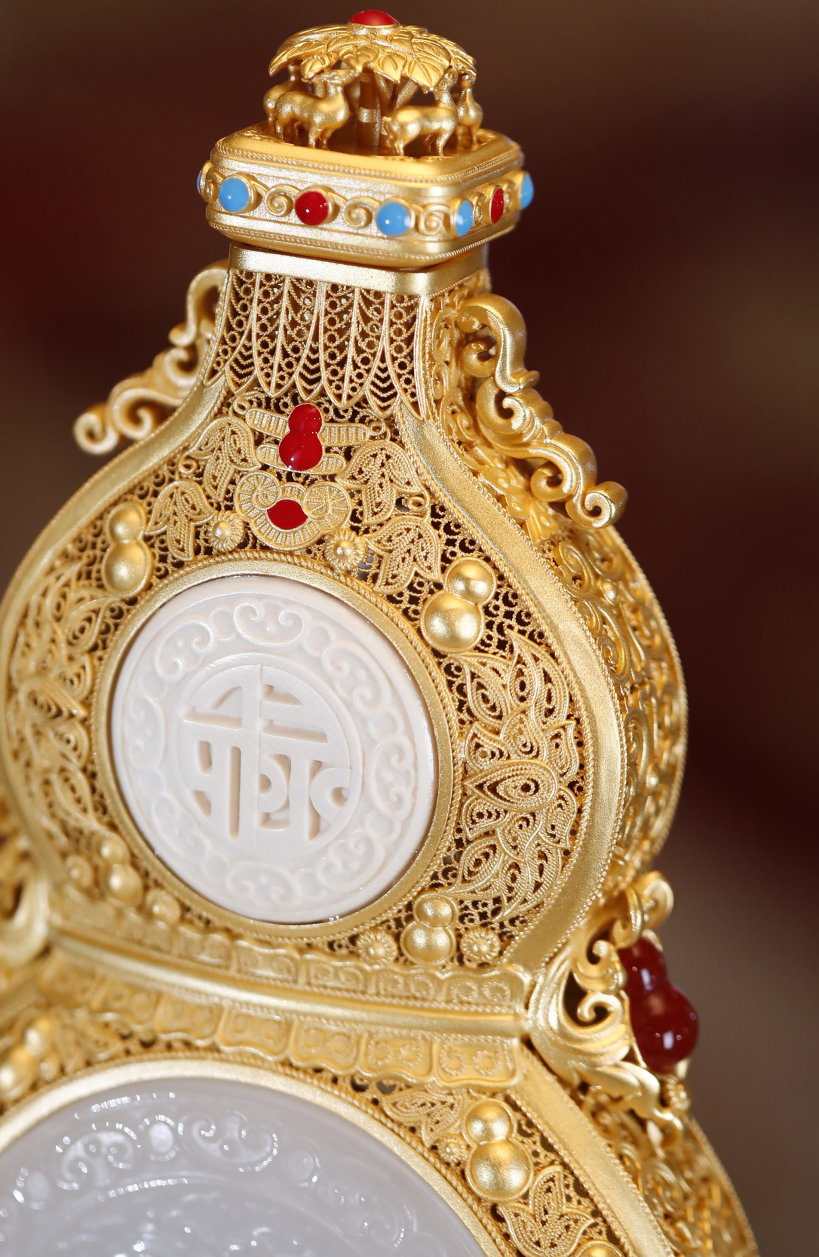 在古代,花丝镶嵌技艺为皇家独有,巅峰之作即为明朝万历皇帝的“金翼善冠”,细如发丝、薄如蝉翼、千丝万缕、国之珍宝。而程淑美大师传承创新,完美复制了这件站在花丝镶嵌技艺顶峰的明珠。