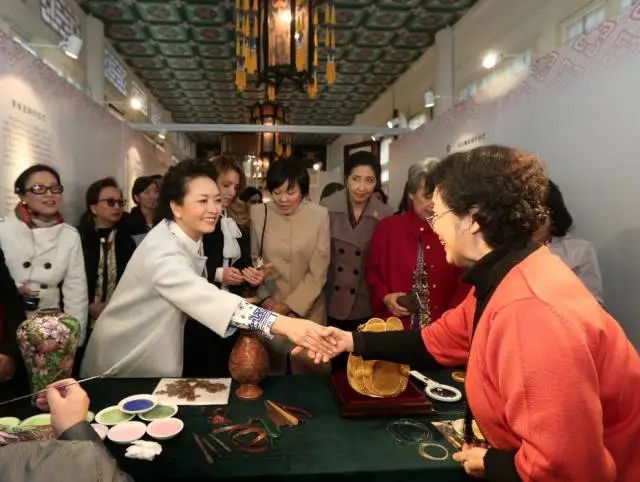 彭丽媛同外方领导人夫人观看花丝镶嵌