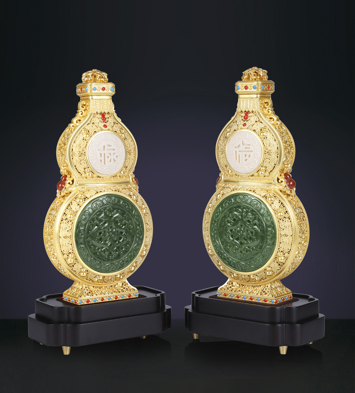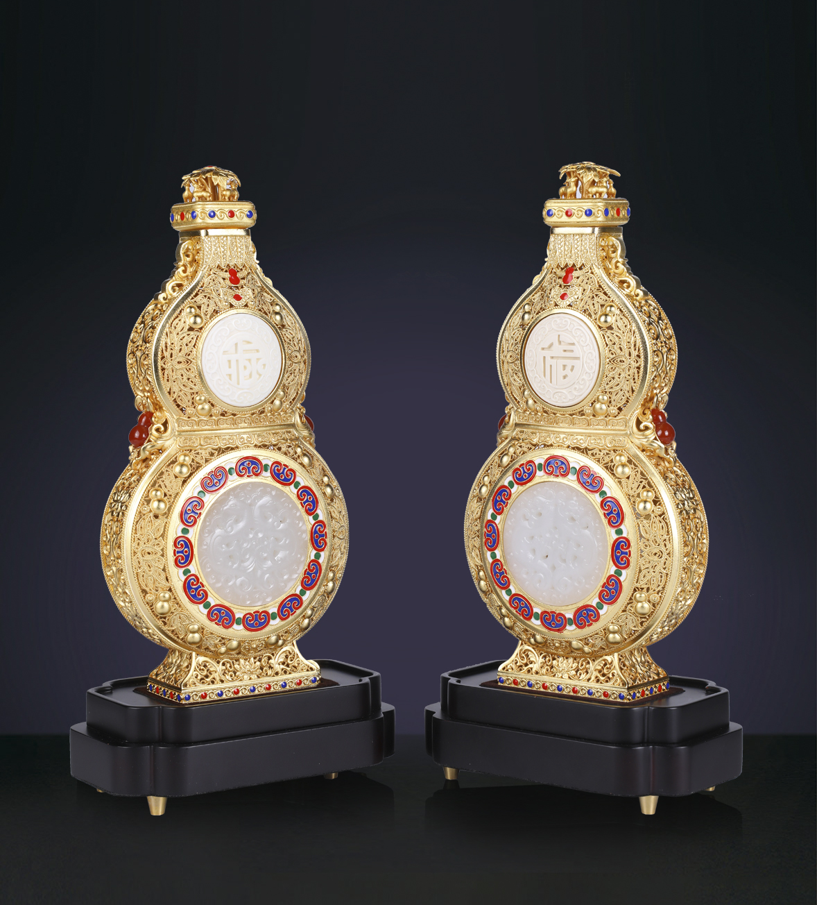 古老的工艺,全新的创作,传承与创新,开拓与坚守,匠心与梦想。金玉盛世,大国传承。《福禄泰瓶》就是一件大美、大气、大制作的文物艺术品。