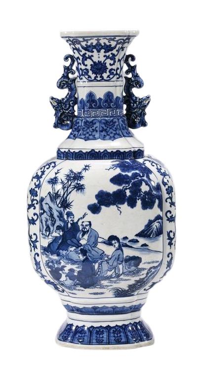 清乾隆 青花八仙祝寿双龙耳海棠瓶
