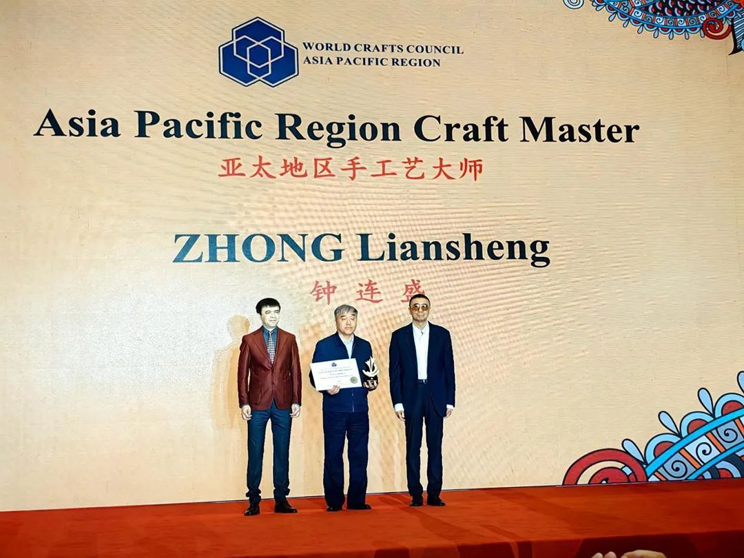 2023年11月8日,中国工艺美术大师、国家级非物质文化遗产景泰蓝技艺代表性传承人钟连盛荣获本届“亚太地区手工艺大师”称号。