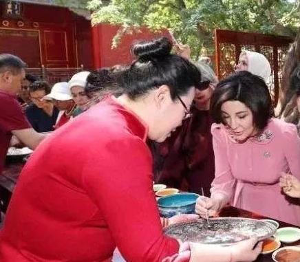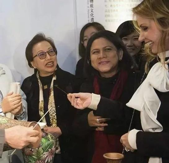 ② 2017年5月“一带一路高峰论坛”期间,钟连盛大师与各国与会元首夫人共同点蓝。